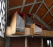 Die Orgel ist im 45 Grad Winkel dazu aufgestellt.
