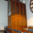 Die gesamte Orgel steht in einem Schwellkasten mit Plexiglasflügeln und ist somit auch als Continuoinstrument sehr gut verwendbar.